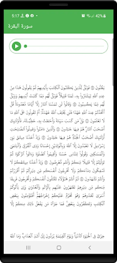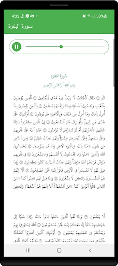 An application that allows you to listen to Surat Al-Baqarah and enables you to read the written Surah