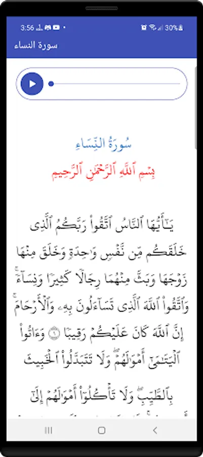 Surat Al-Nisa in the voice of Sheikh Al-Sudais is audible with the ability to read the text of the surah