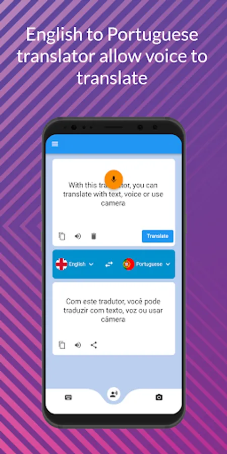 With this translator you can easily translate words and text from Portuguese to English and from English to Portuguese. This translator is free and you are able to translate words or sentences quickly, conveniently and easily.