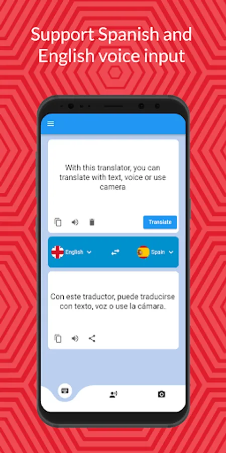 With this translator you can easily translate words and text from Spanish to English and from English to Spanish.This translator is free and you are able to translate words or sentences quickly, conveniently and easily.