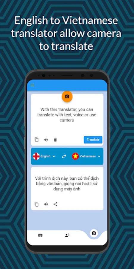 With this translator you can easily translate words and text from Vietnamese to English and from English to Vietnamese. This translator is free and you are able to translate words or sentences quickly, conveniently and easily.