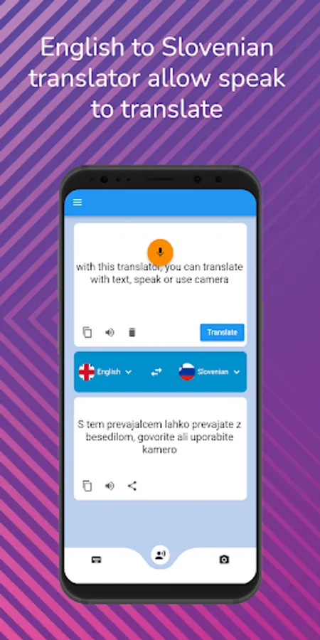 With this translator you can easily translate words and text from Slovenian to English and from English to Slovenian.This translator is free and you are able to translate words or sentences quickly, conveniently and easily.
