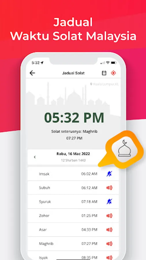 - Solat prayer time including Imsak, Subuh, Syuruk, Dhuha, Zohor, Asar, Maghrib and Isyak.