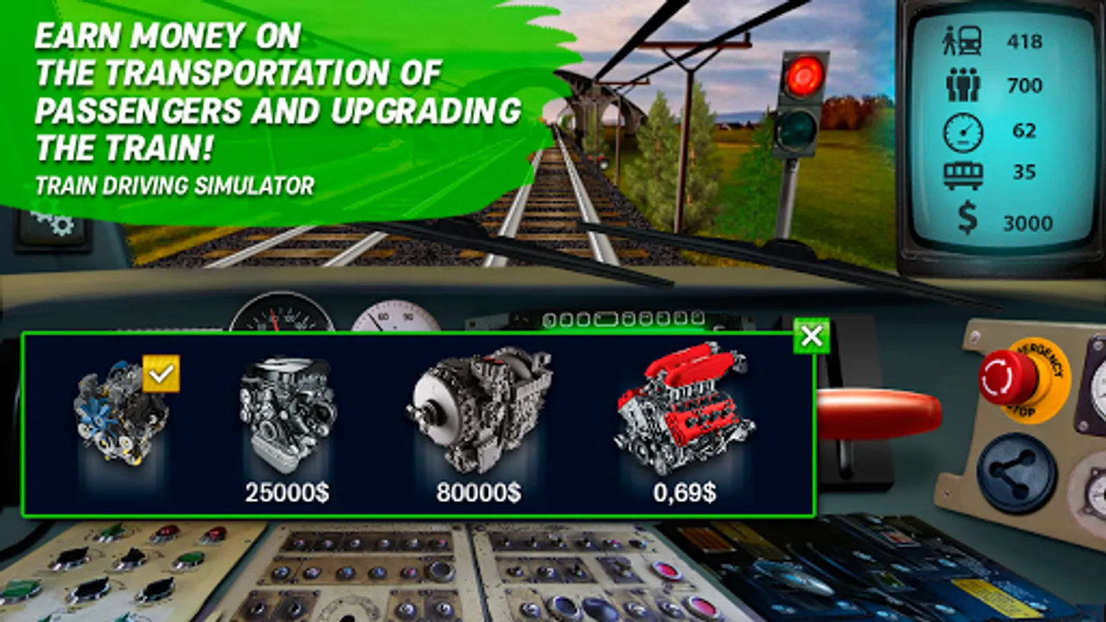 Drive train - a simulator ride on the rail road! Manage your real train drivers cab! Transported by rail structure from station to station, do not forget to signal oncoming passenger trains and freight trains! Do you like to listen to the sound of the wheels on the rails? Like the sound of approaching to the train station? Feel machinist! Look at the control cabin looks like inside! Pick up speed, braking, driving past fields and forests - Vod train!