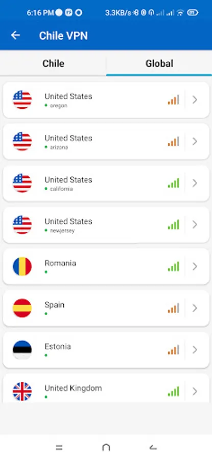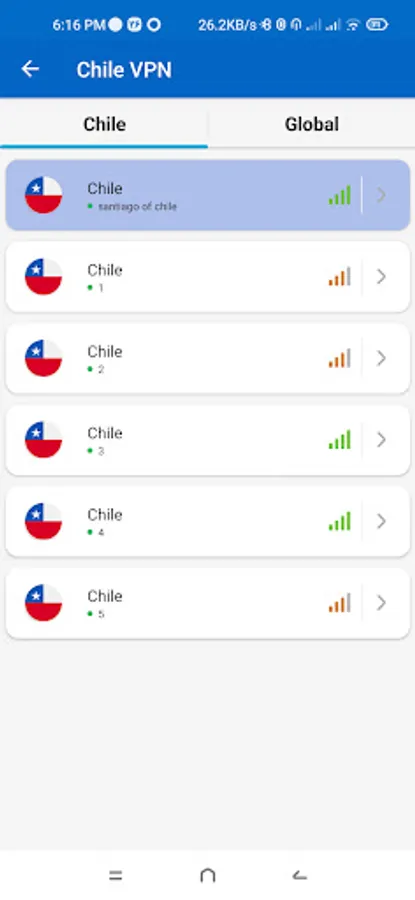 Enjoy Chile VPN server and get into Chile websites freely with no trouble. This Chile VPN app will give you Chile VPN connection with great speed and security, so that you can browse the internet with ease and comfort.