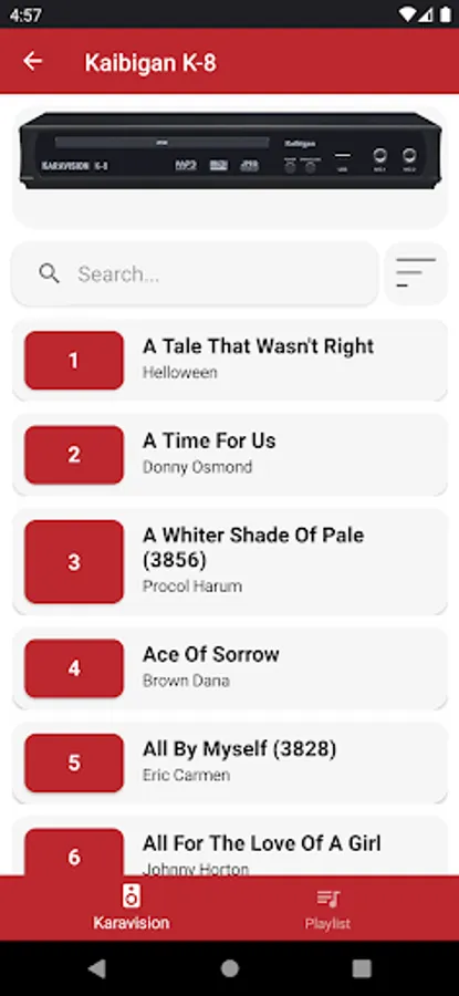 The Karavision Songbook Application is the digital replacement for your Karavision Karaoke songbook. It is compatible with all models of Karavision Karaoke. The application allows you to quickly search for the songs that you love to sing and it would show you the code to enter on your Karavision Karaoke. It also allows you to save your playlist for future reference. The Karavision Songbook Application is free for all Karavision Karaoke users.