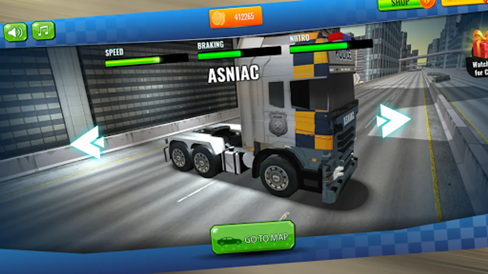- In-App shop, with a wide range of options for purchasing new vehicles and roads.