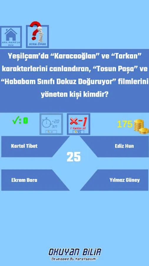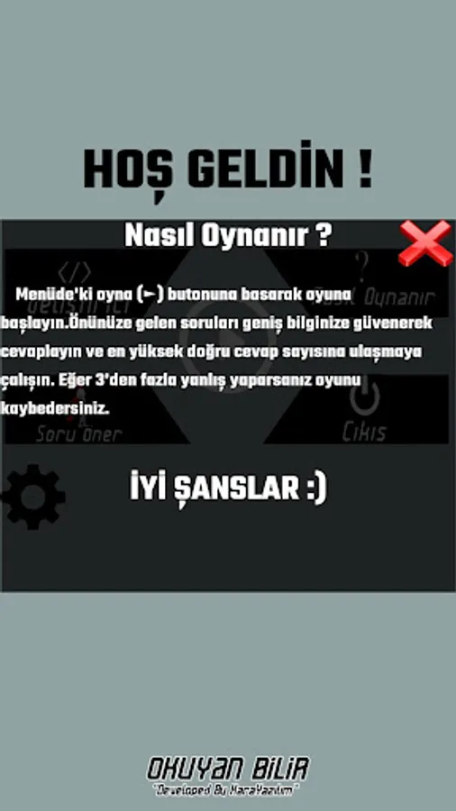 Hello, do you trust your general cultural knowledge? Then this game is for you! OkuyanBilir is a quiz game where you can take your general culture level to the top. The more correct numbers you reach in the game, the better your general culture level. Watch out, don't do more than 3 mistakes! If you make more than 3 mistakes, the game is over!
