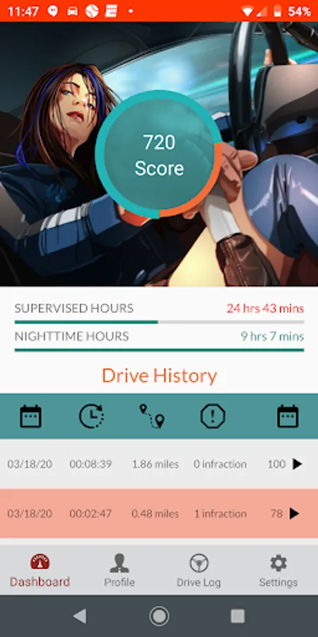 Many states require that young drivers receive 50 hours of supervised practice time (including 10 hours of nighttime driving) before they receive a driver's license. Currently this is tracked by filling out a paper log.