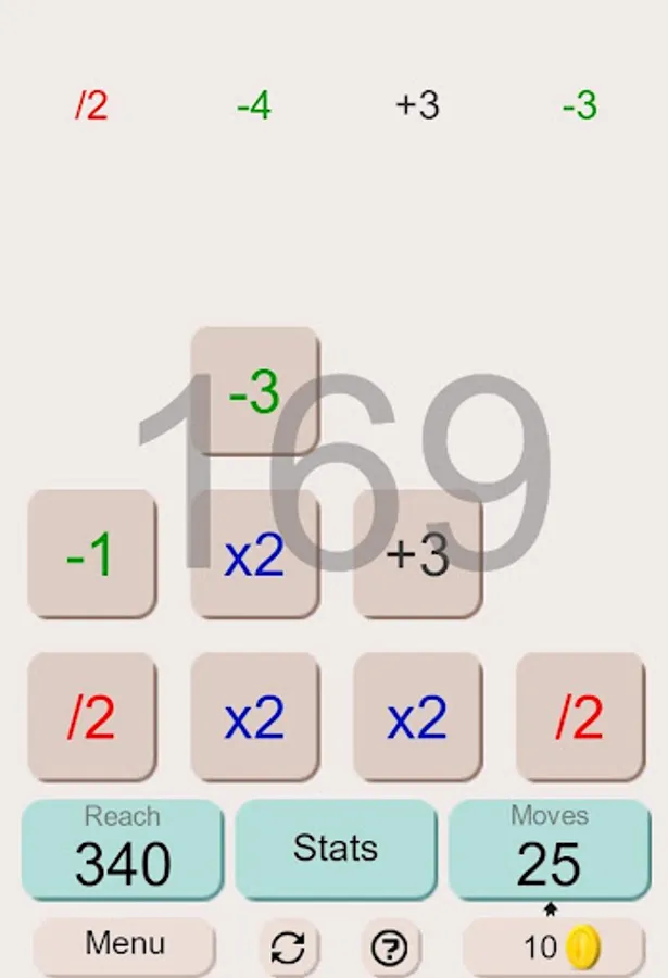 * When you touch a number at the top, it falls down and comes into play, costing you 1 Move. If Moves hit 0, you can no longer do this. After that, when you clean the board, it is game over.