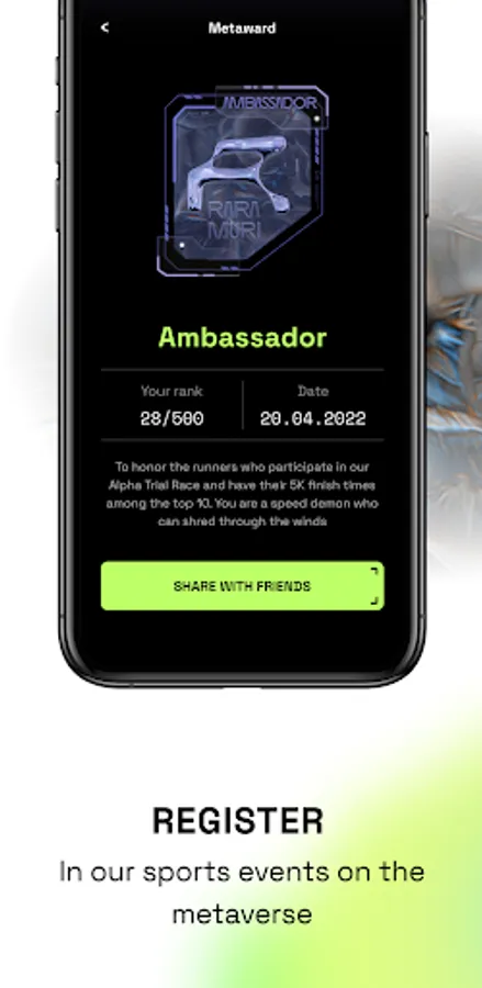 NFT'd race records (permanently stored on blockchain) which will be your qualifications for our future events