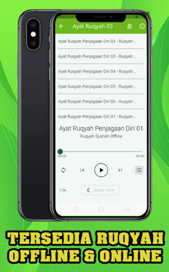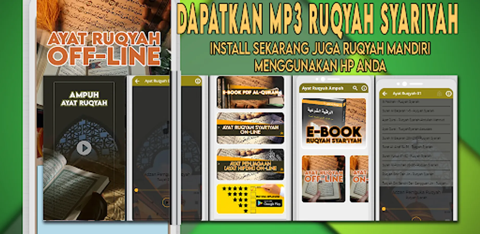 You find an application that is complete with the main contents of MP3 verses reading Ruqyah which is equipped with a PDF book of fine reading ruqyah.