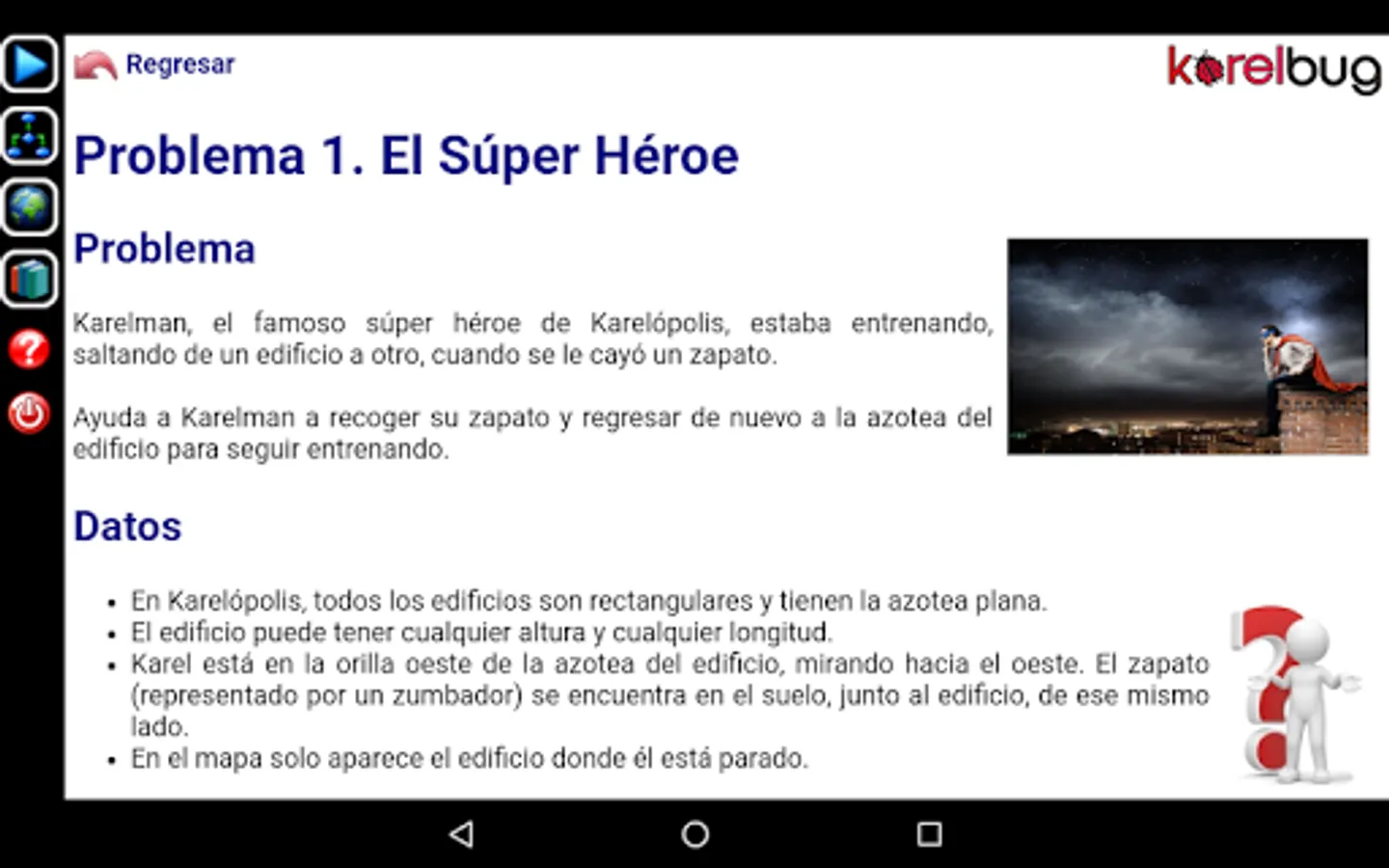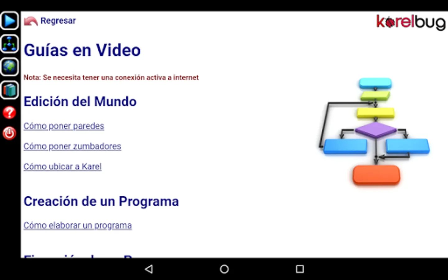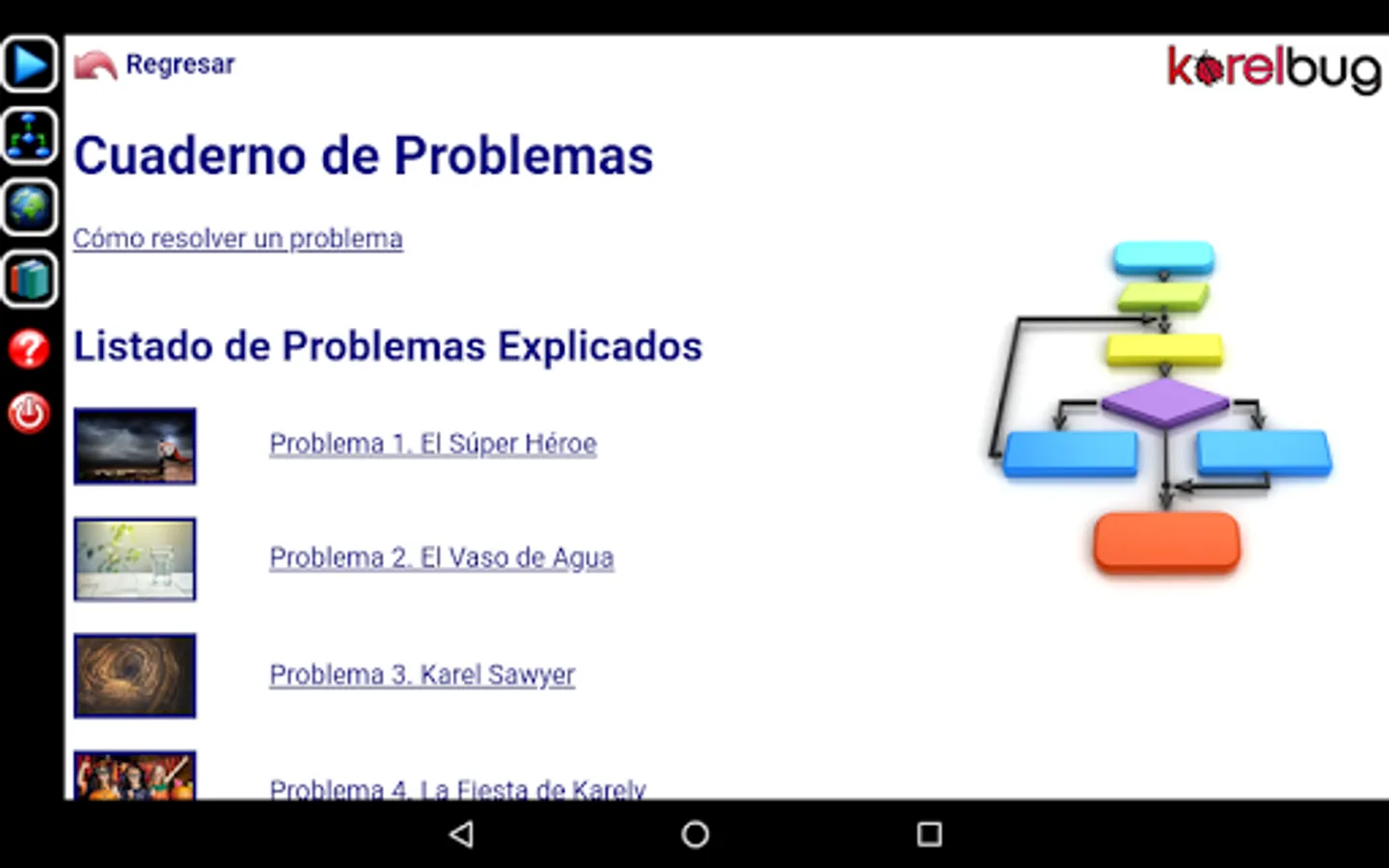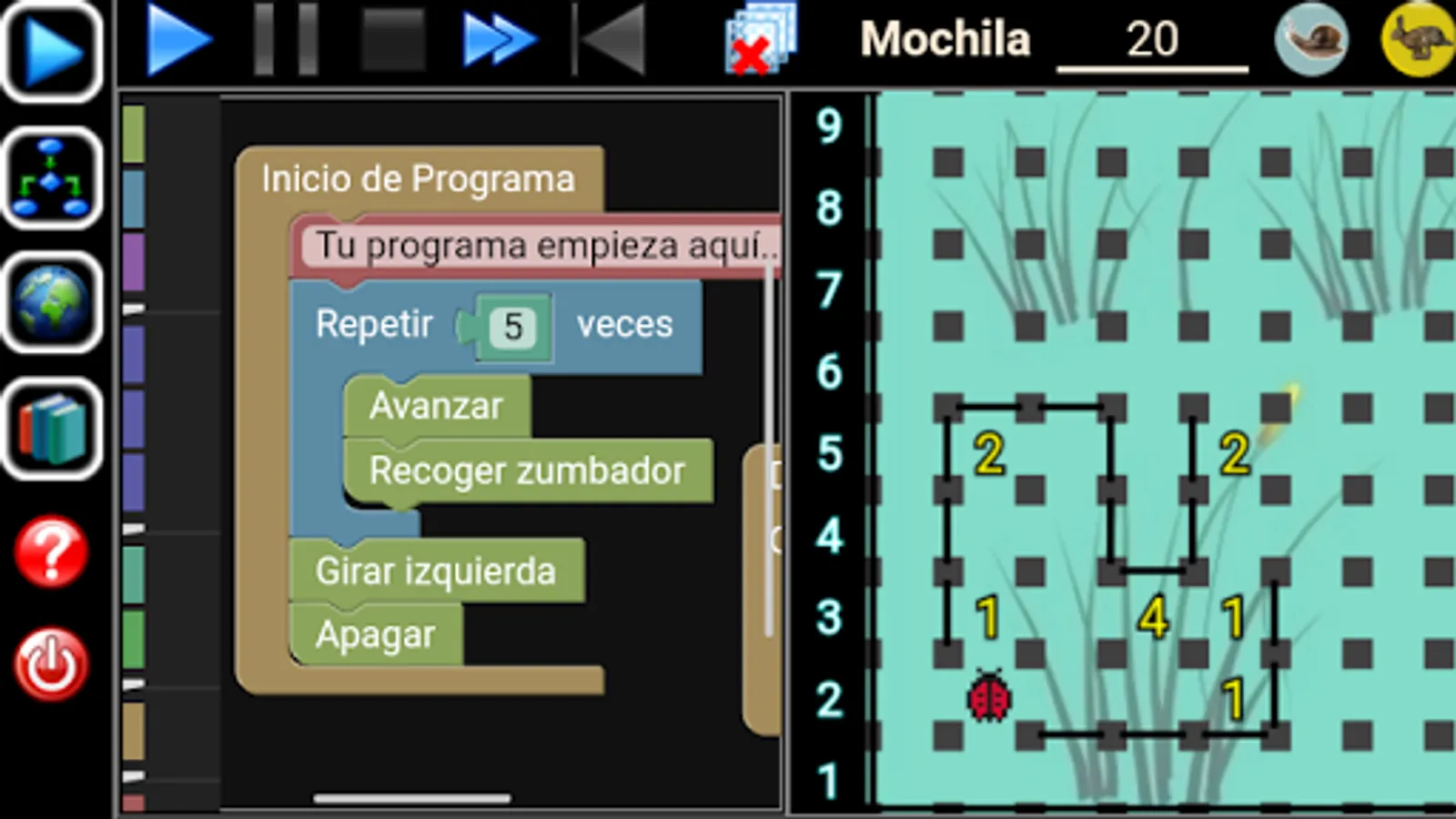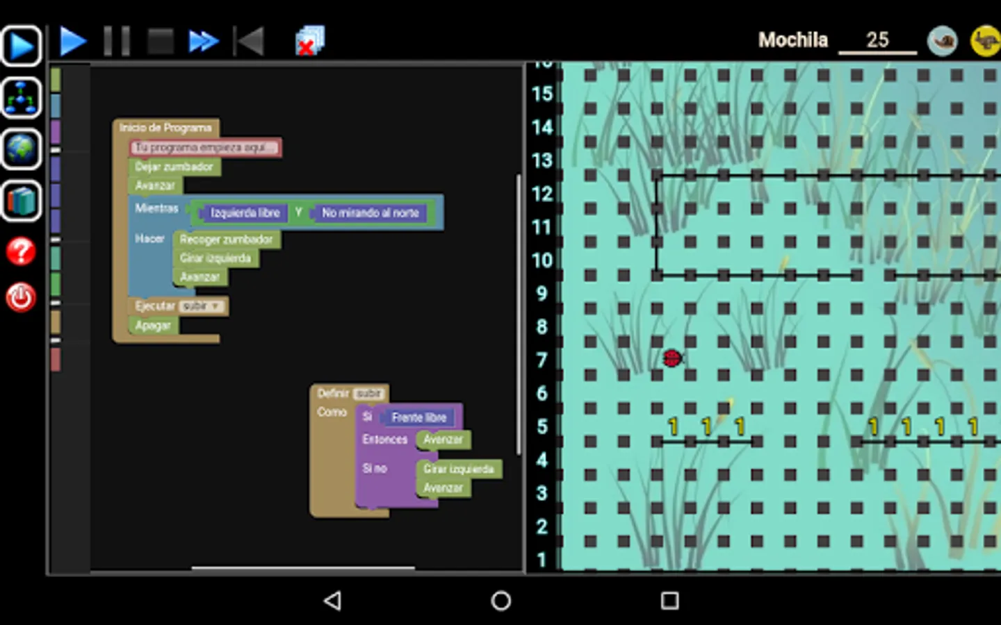 The Karel Insect app will help you enhance your problem solving skills using a block programming language and a friendly graphical environment, with a simple and enjoyable tutorial, and a set of interesting problems.