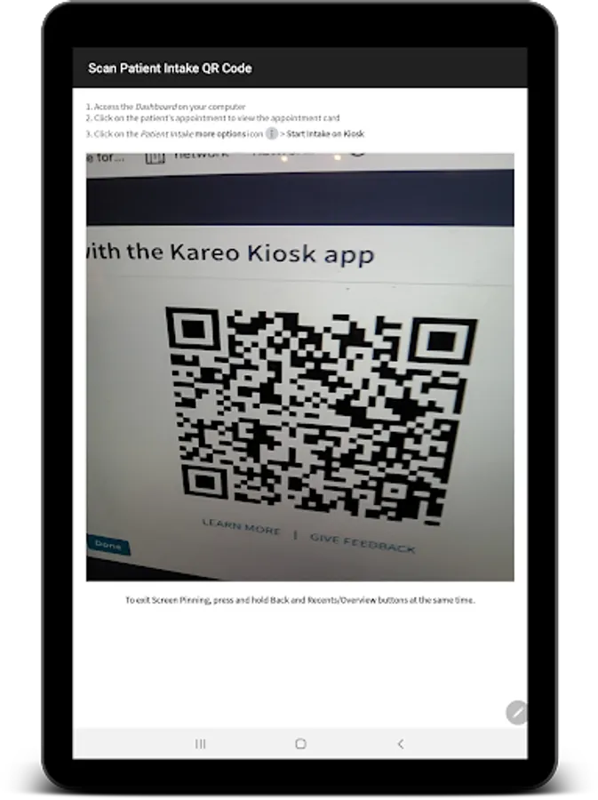 • Simple functionality using a QR-code generated within the patient’s appointment on the Kareo dashboard.