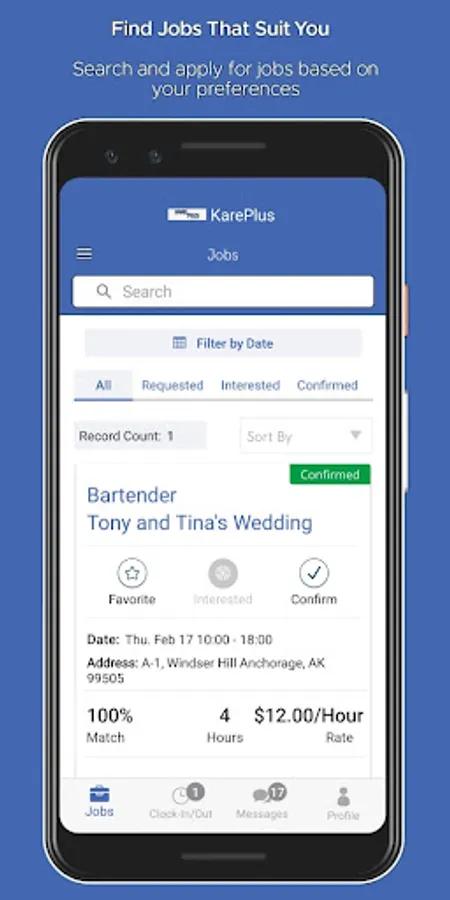 Best matching job are automatically available to you based on your location, schedule, skills and other preferences. You can review job details and apply with a click or even save them as your favorites. Once a job is confirmed will notify you with all the required details. We will even send you a reminder before the job starts. You can also get direction to your work location or download to your calendar.