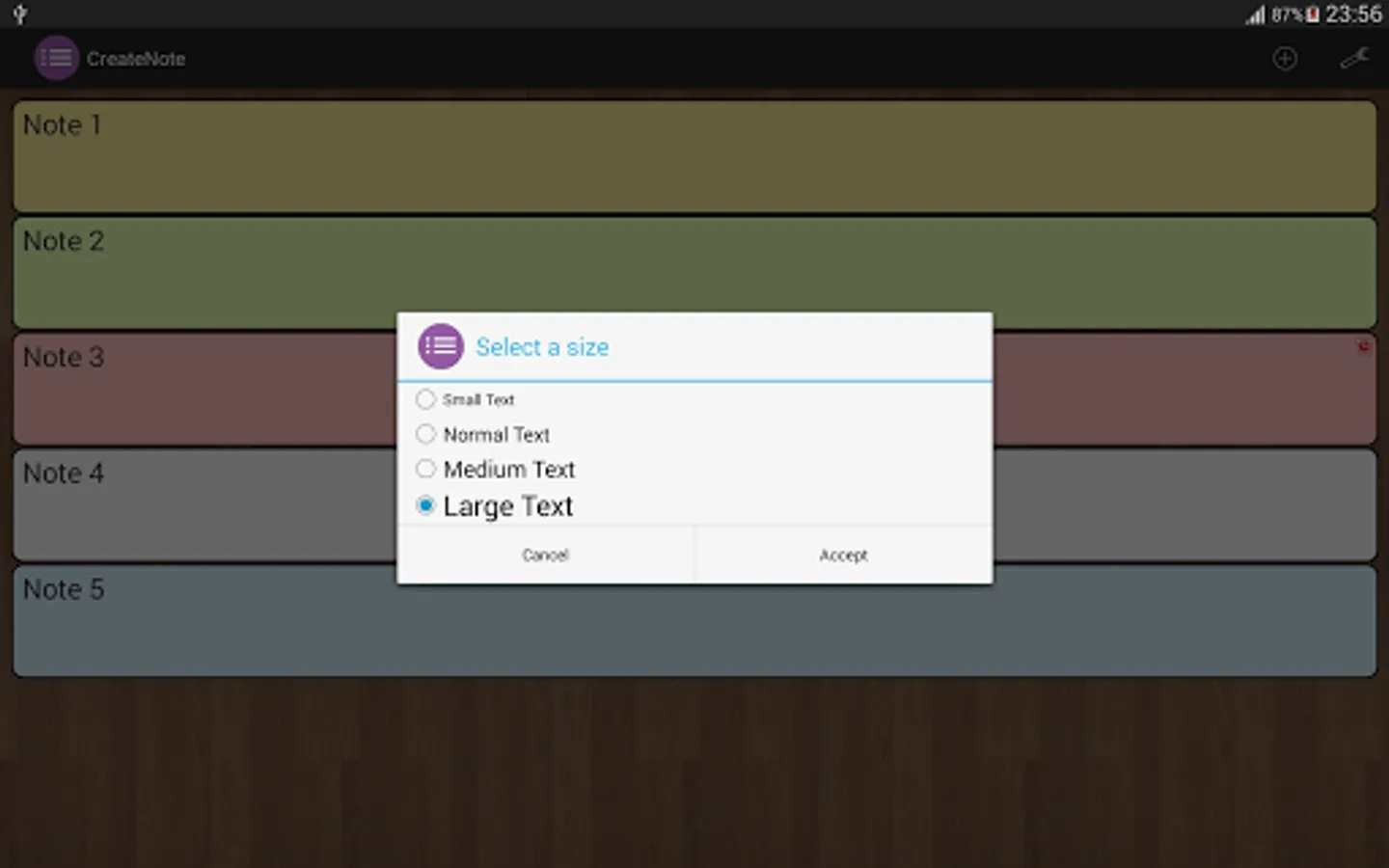 Including the option to share your notes for you to send Email, Facebook, WhatsApp, etc..