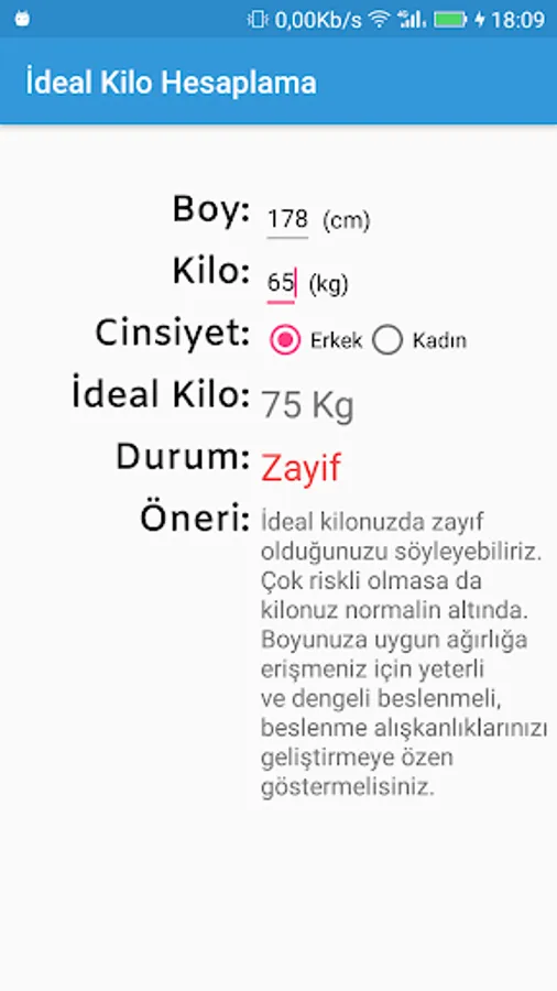 With this app you can calculate your ideal weight according to your height and body mass index.
