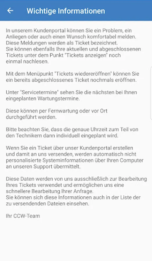 With emis.kundenportal you can create a ticket at CCW-Computer Center Werner from anywhere, manage your tickets and reopen tickets.