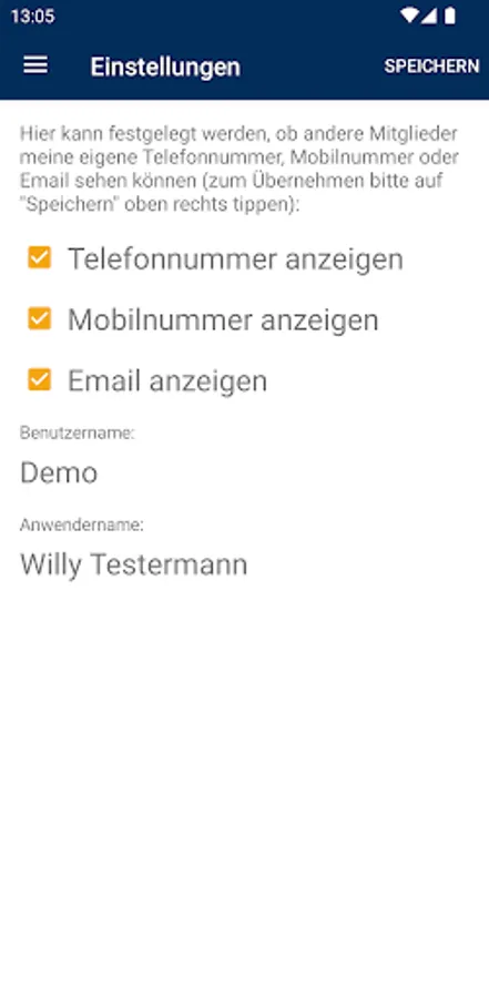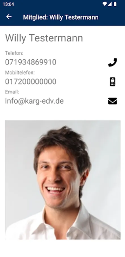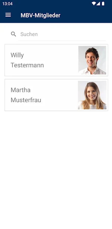 An app for members of MBV Kondor e.V., with which the contact details of selected members can be called up.