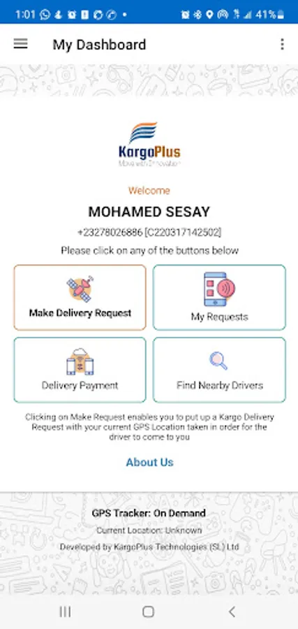 KargoPlus Customer is an app designed to be used by anyone seeking to make a delivery request using KargoPlus services. It allows the KargoPlus Drivers to identify and accept these Customer Delivery Requests and thereby makes it possible to track the delivery of the cargo from the inception stage to the drop at the desired destination. The app also makes it possible for the KargoPlus Customer to know the driver's current location as they deliver the cargo.