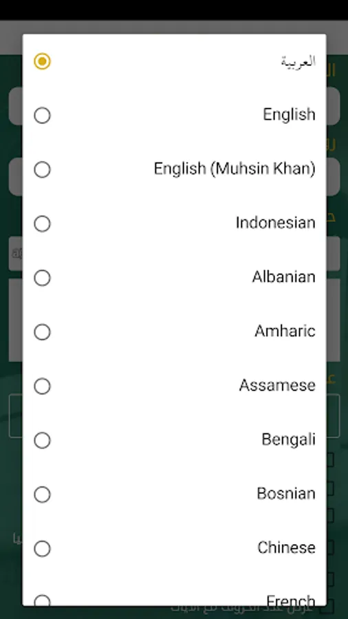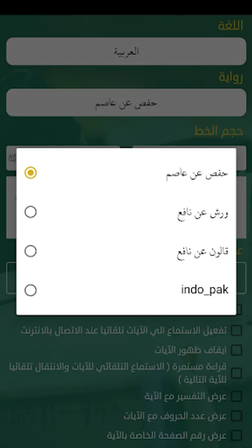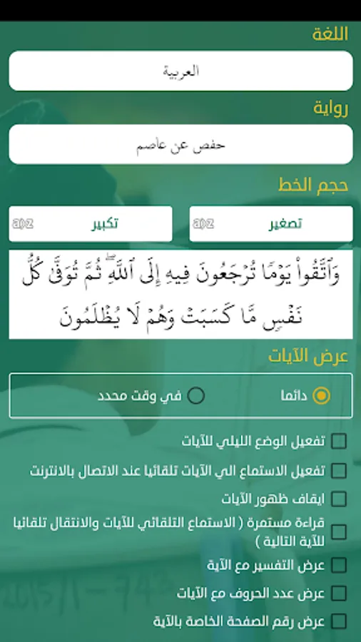 1- تستطيع اختيار الأية التى تريد أن يبدأ البرنامج بعرضها.