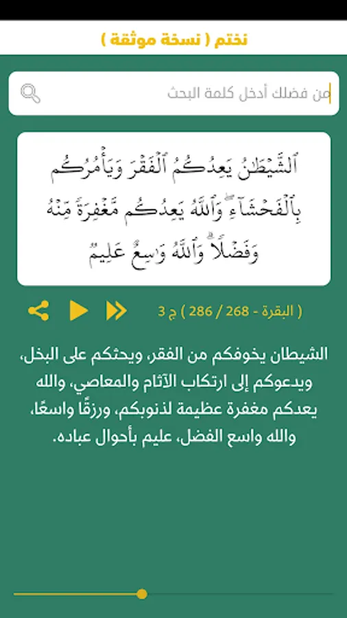 4- يعرض لك الأية السابقة والاحقة ، للأستزادة من القراءة .