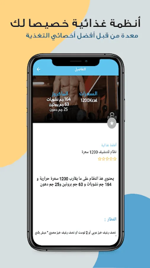 Providing more than 50 healthy recipes with calories and macros, "the percentage of fat, protein percentage, and the percentage of carbohydrates". It also includes the components of each recipe and the method of preparing each recipe with the ability to add recipes to your favorites list for reference and browse at any time.
