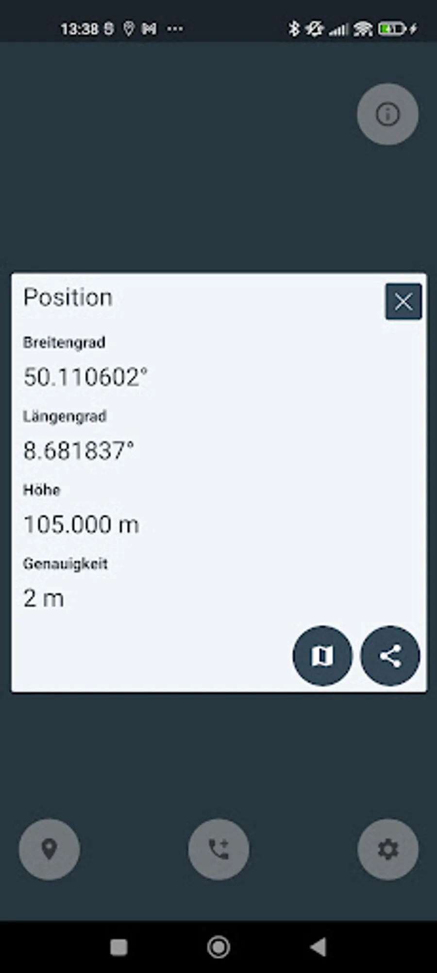 In addition to sending the location data, the position can also be displayed and shared, e.g. via WhatsApp.