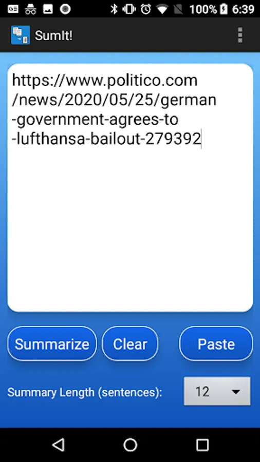 • If you find pasting the url not working, simply copy all the text and paste it to summarize.
