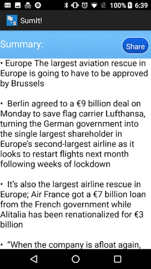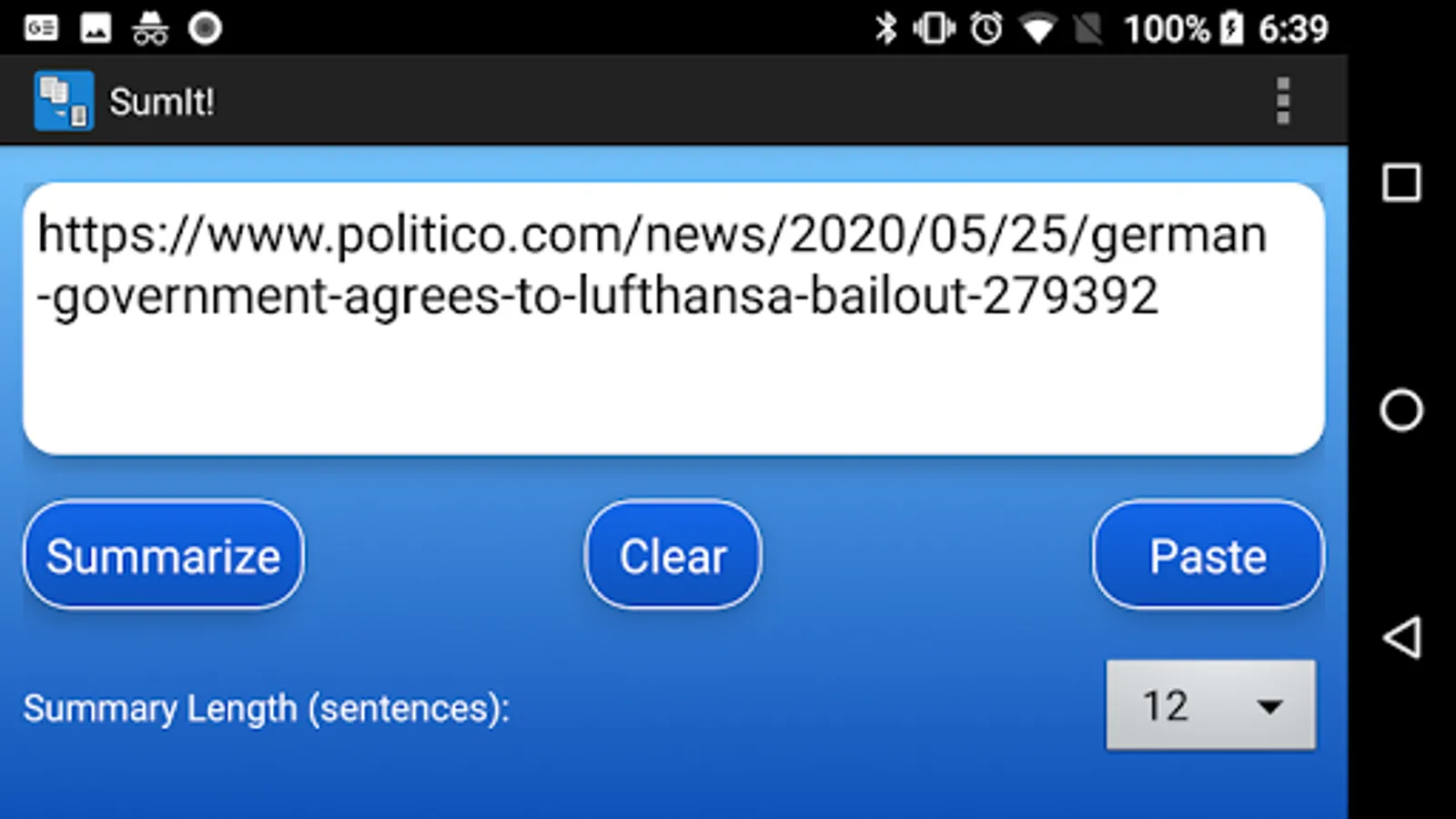 This is a text summarizer app, its usage is for news articles and any large piece of text that is public, please use accordingly before rating or writing bad reviews that completely miss the point.