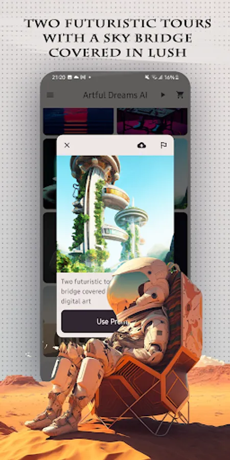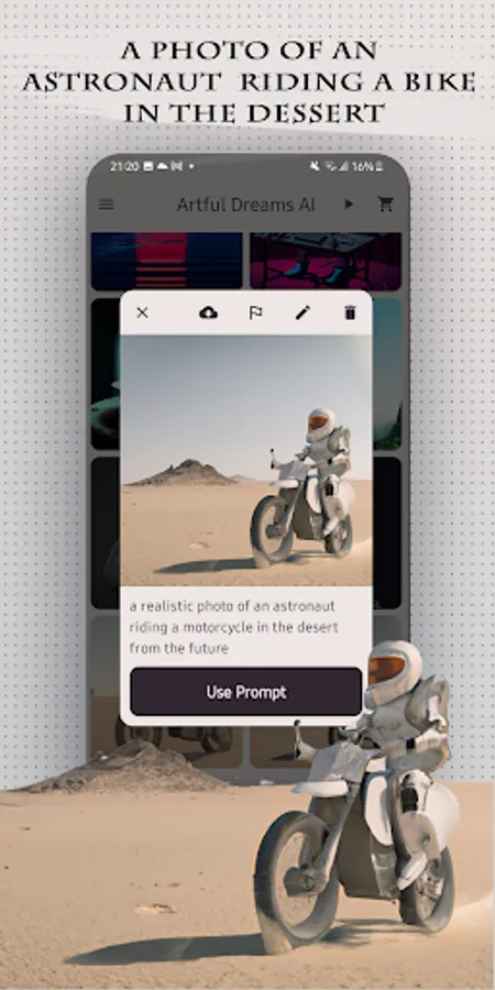 Artful Dreams AI is the ultimate fun-filled art generator app that uses AI to bring your wildest artistic visions to life. With Artful Dreams AI, you can turn any text into a work of art, generate variations from a given image, and edit photos like a pro. Our cutting-edge neural networks are trained on a diverse dataset to produce a wide range of styles and variations, ensuring that every creation is truly one-of-a-kind. The app's interface is intuitive and user-friendly, making it easy for anyone to unleash their inner artist. Whether you're a professional or a complete beginner, Artful Dreams AI is the perfect tool for exploring your creative side and bringing your artistic dreams to reality. So, why wait? Download Artful Dreams AI and let the fun begin!