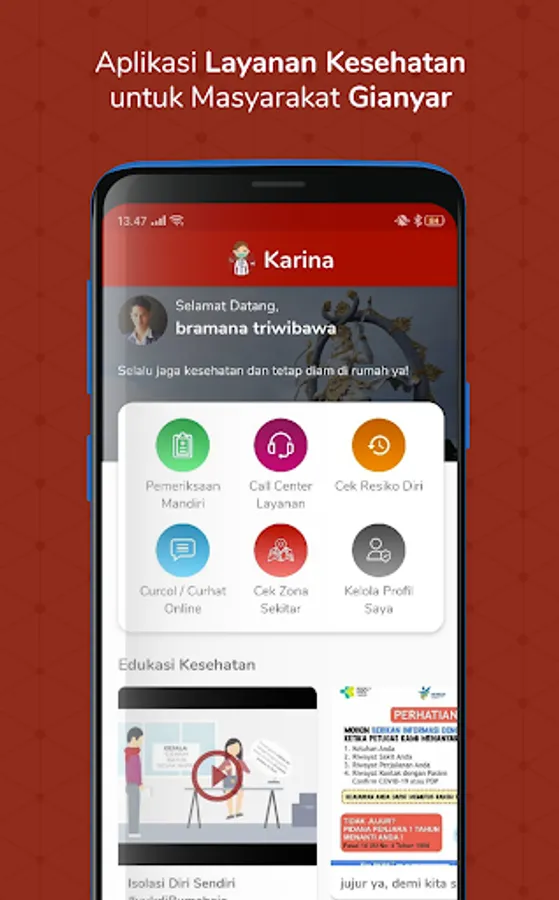 Karina is a health service information center application for the people of Gianyar Regency which has features.