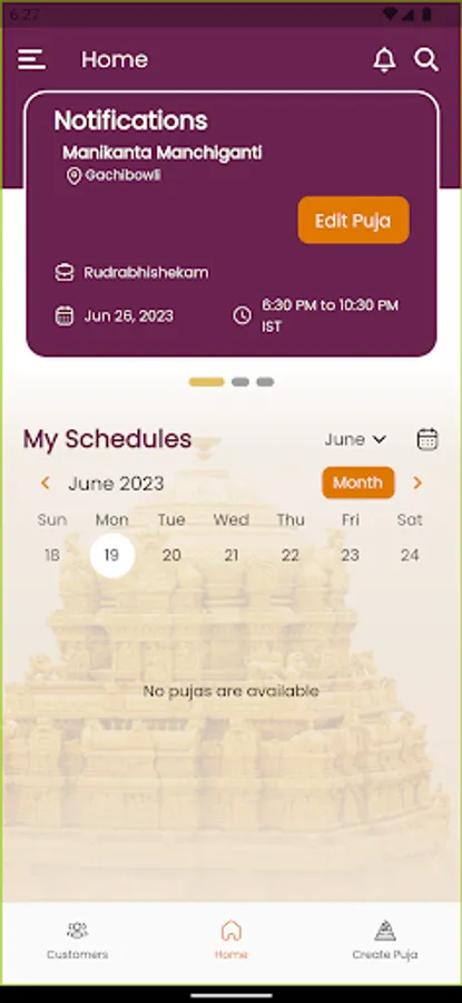 The app also allows a pujari to create a new puja from the beginning and not just assigned ones..