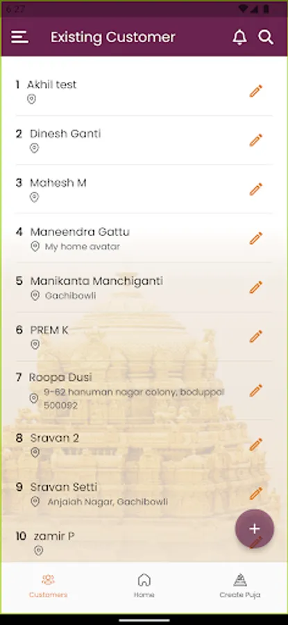In addition to accepting bookings, the app allows pujari to add their customers information for easy retrieval for future pujas.