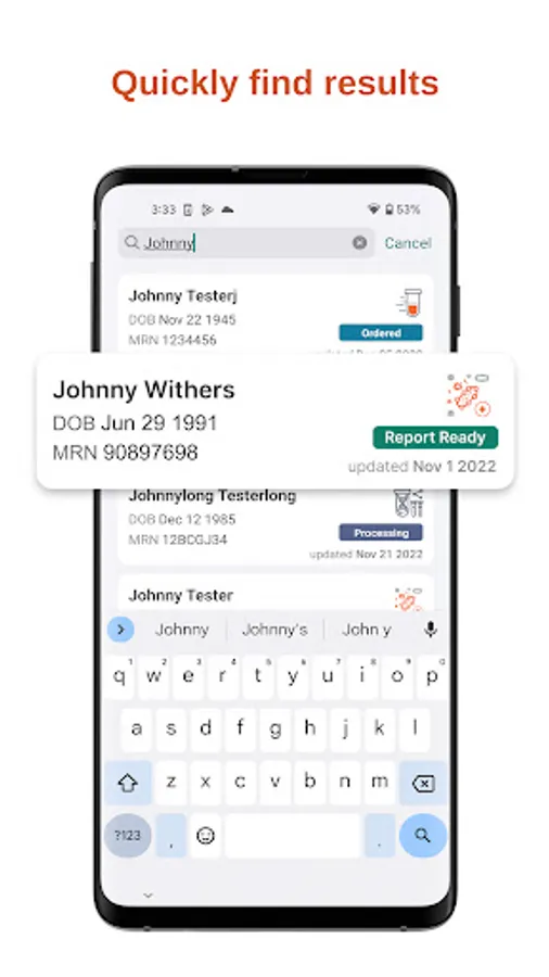 Results are available digitally as soon as they are released from our laboratory. You can also easily search through past results.