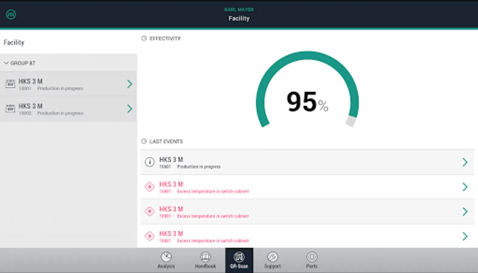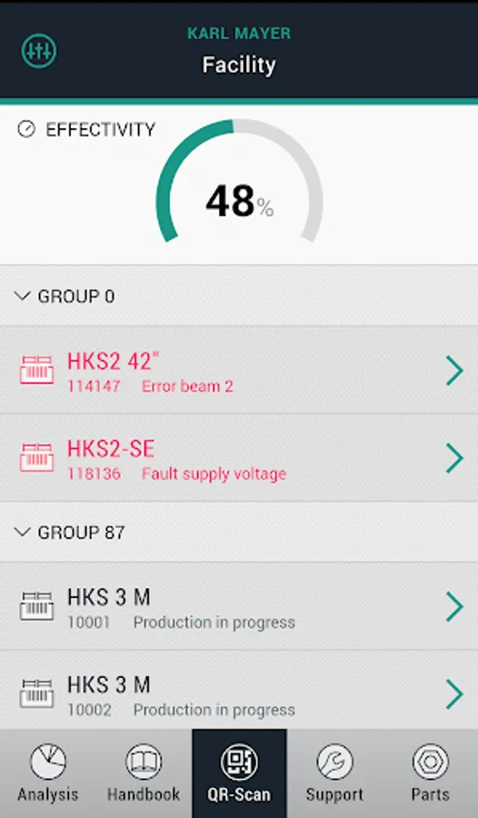 Level 1: You can scan a QR code via a mobile device and send off a service request to KARL MAYER, thus, transmitting important data for explaining the problem. Additional photos and comments can be inserted to give more details of the service request.