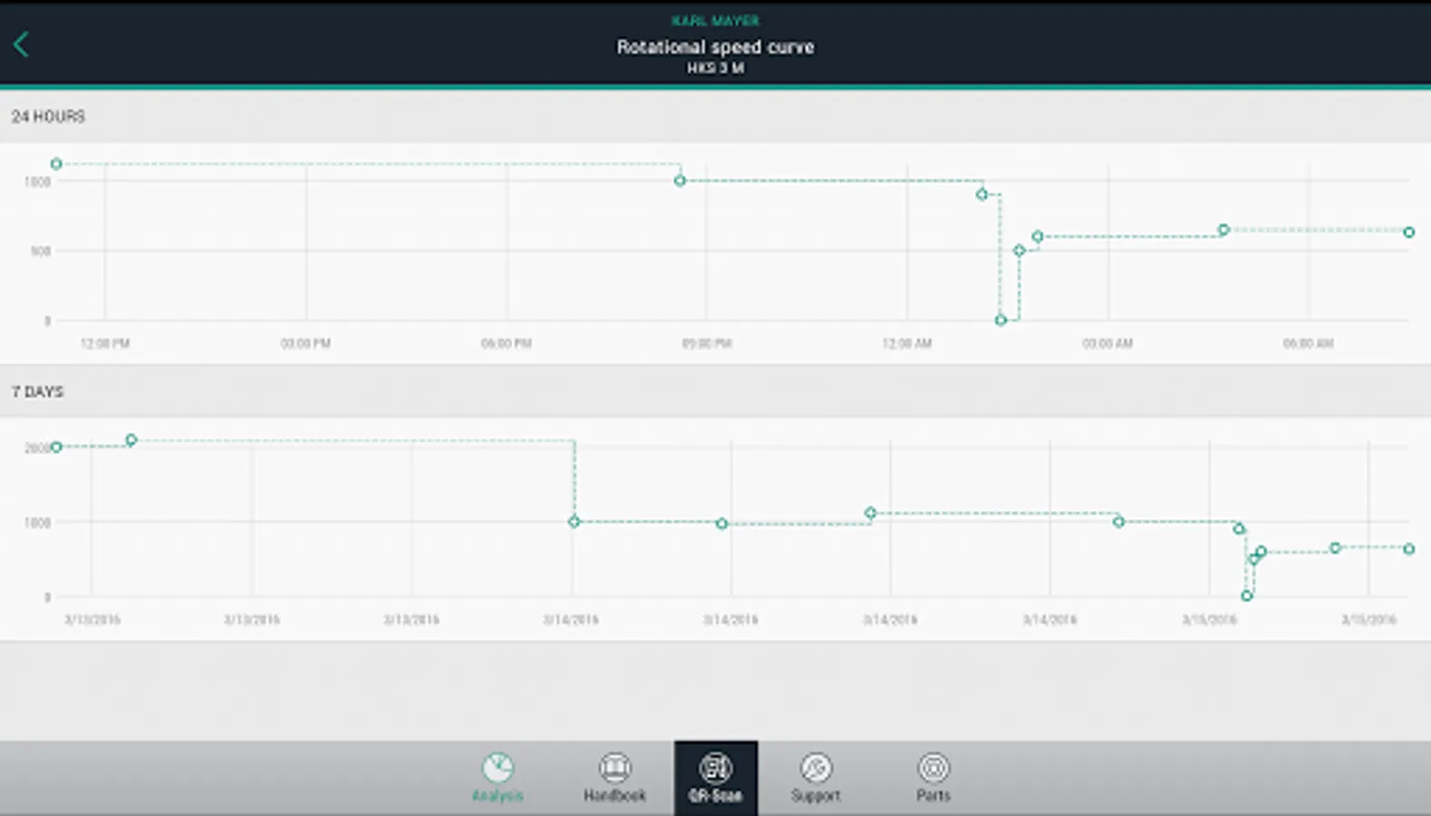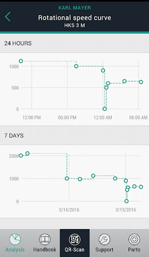 • You can also look at your machine data within your company network, even outside the machine’s working area. The operating data are also available for checking whilst on the move, and these include the notification history, the rotational speed record and the last machine events.