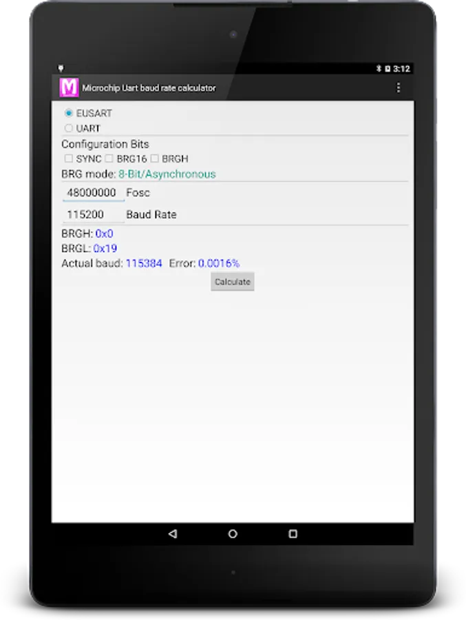 Microchip UART baud calculator for EUSART and UART peripherals.