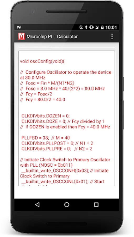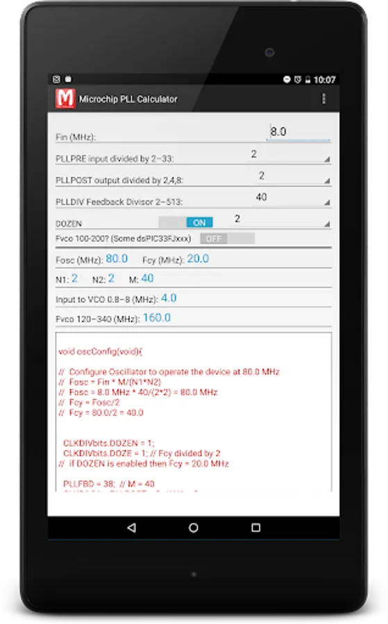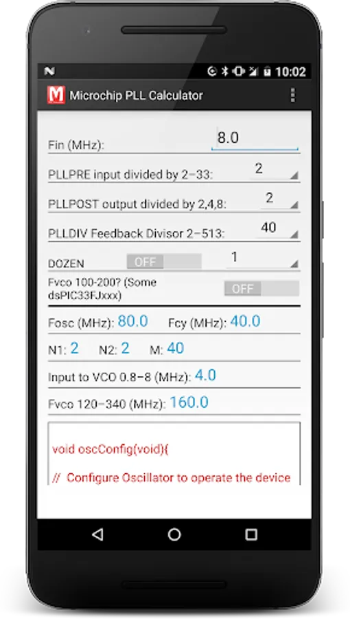 • Simple app to calculate values for setting up Microchip's PLL oscillator values for dsPIC33 and PIC24 Micro controllers.