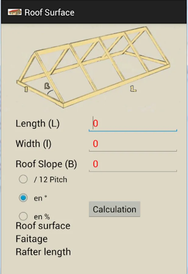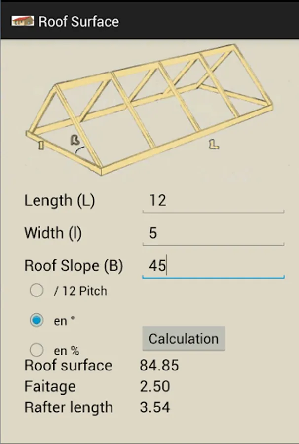 This tool allows you to calculate the area of a gabled roof or single slope with a little method.
