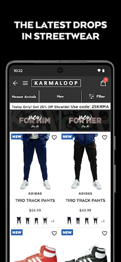 Log in with your existing Karmaloop account or create a new account to use on both the App and Karmaloop.com.