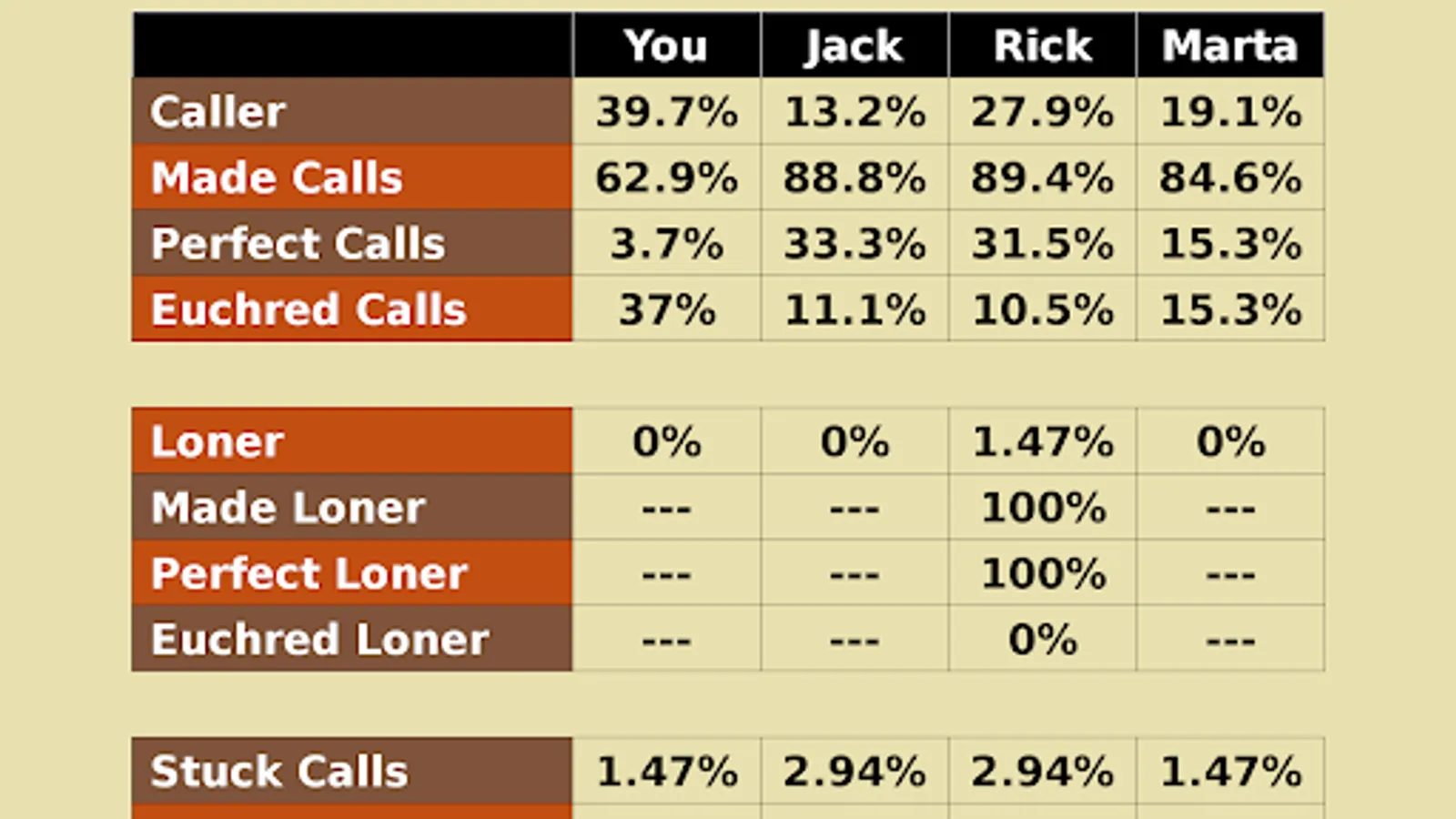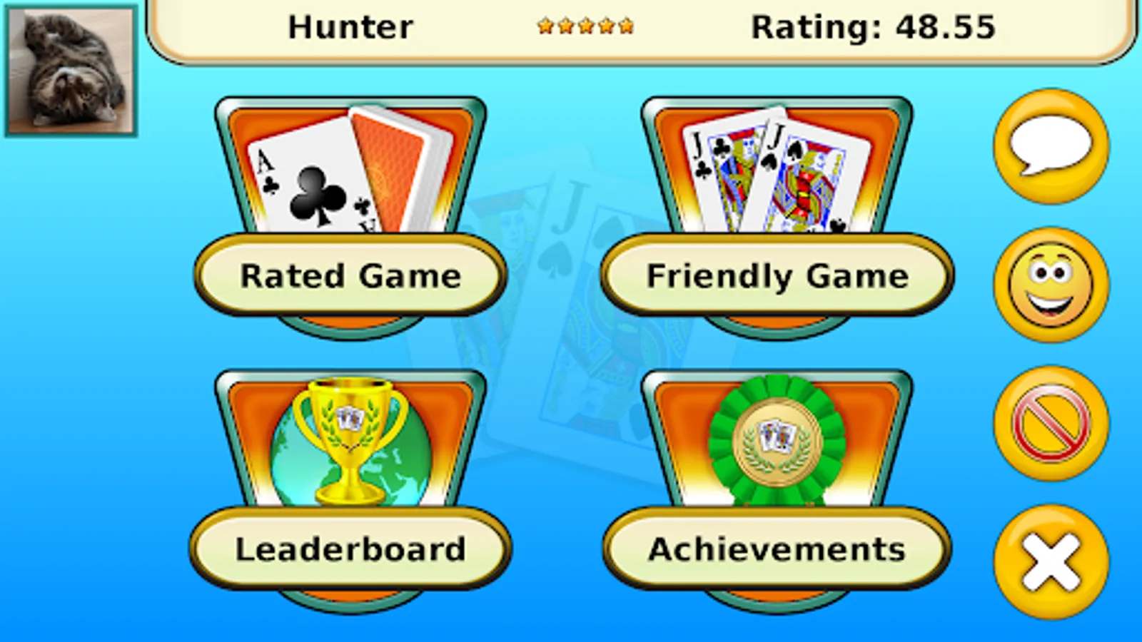 - Online multiplayer - play euchre with friends or join rated games with players from all over the world matched by their ratings