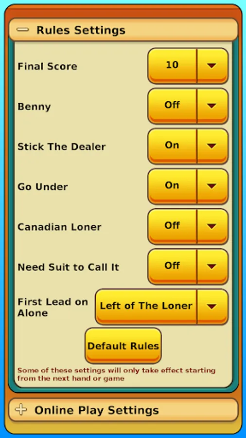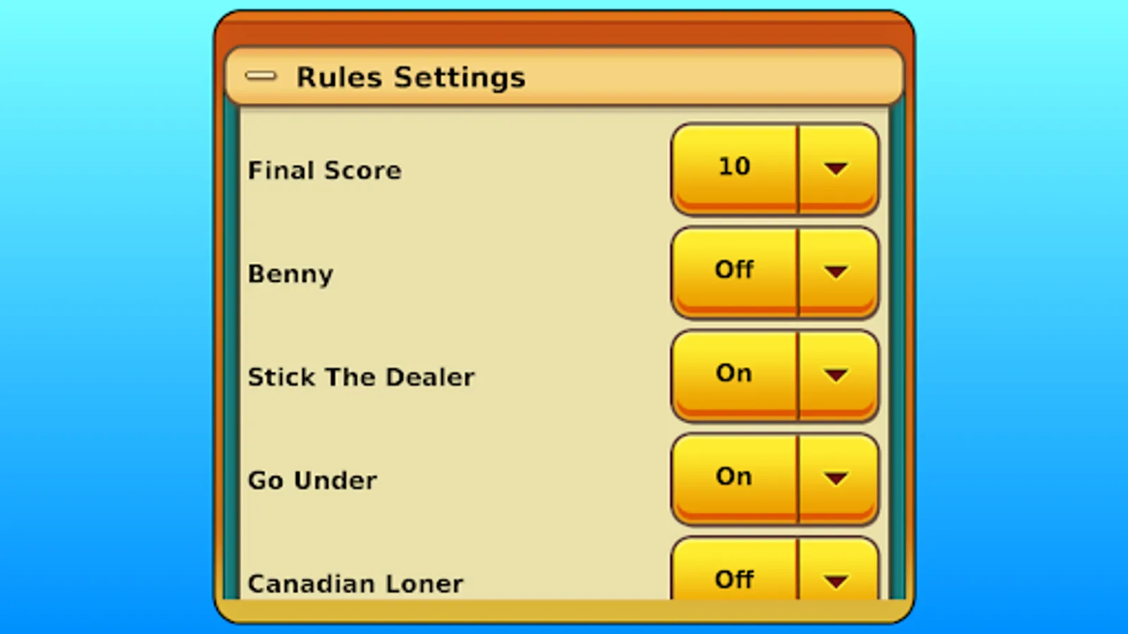 - Rules options for Joker (Benny), Canadian Loner, Going Under, Stick The Dealer, ...