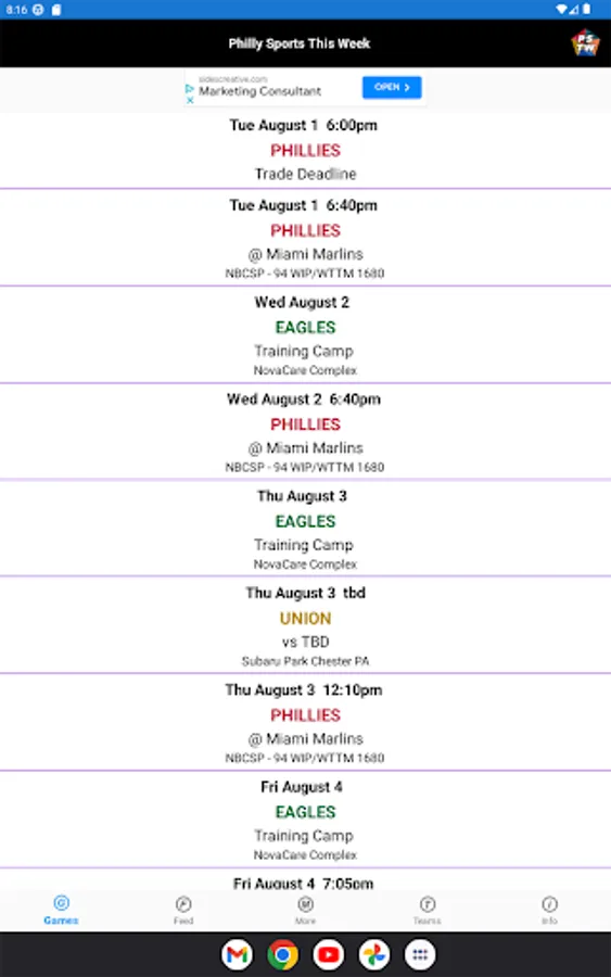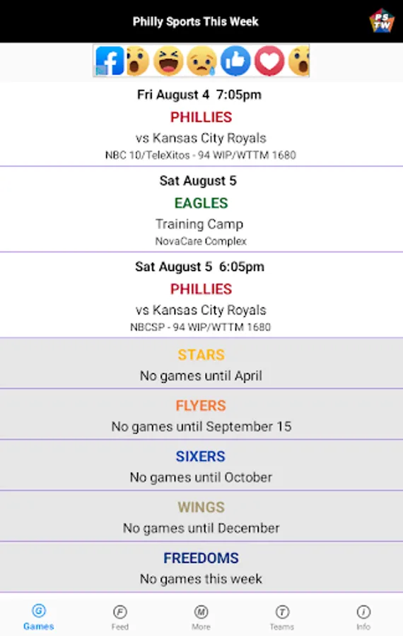 Philly Sports This Week lets you know when, where and who all the Philadelphia professional sports teams are playing for the current week and beyond. TV and Radio listings are included for the following teams: