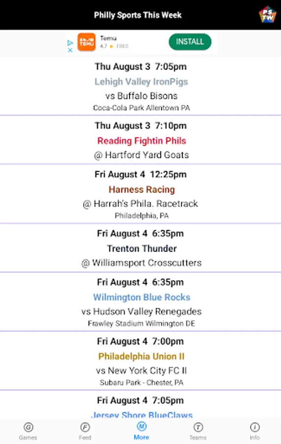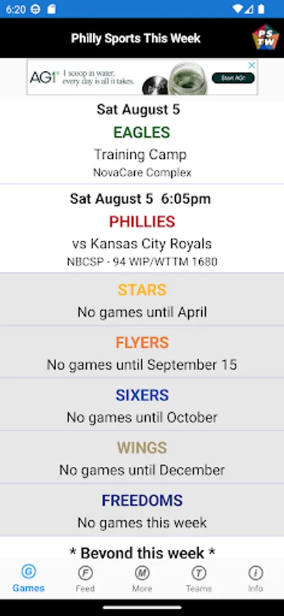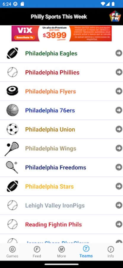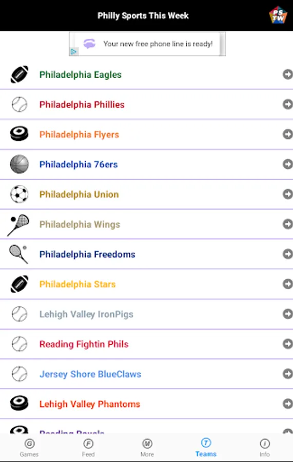 This app has no affiliation with the MLB, NFL, NHL, NBA, MLS, NLL, USFL, WTT, MiLB, AHL, ECHL, NBA G League, MLS NEXT Pro, NASCAR, ARCA, NHRA.