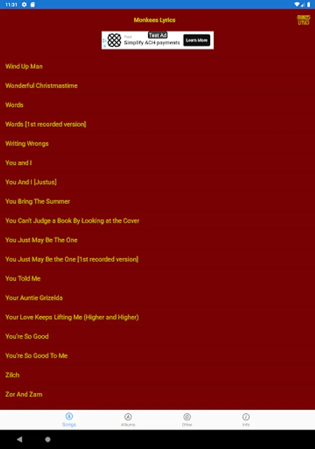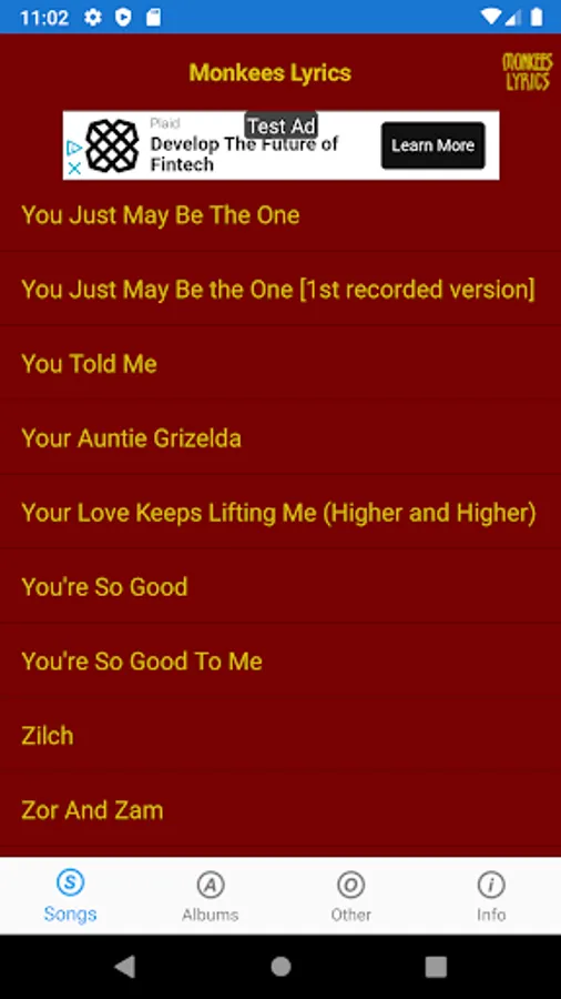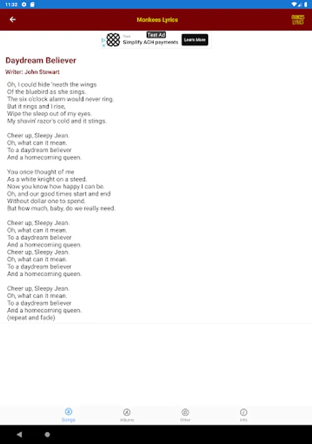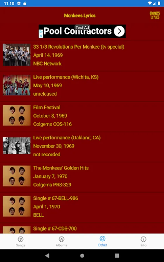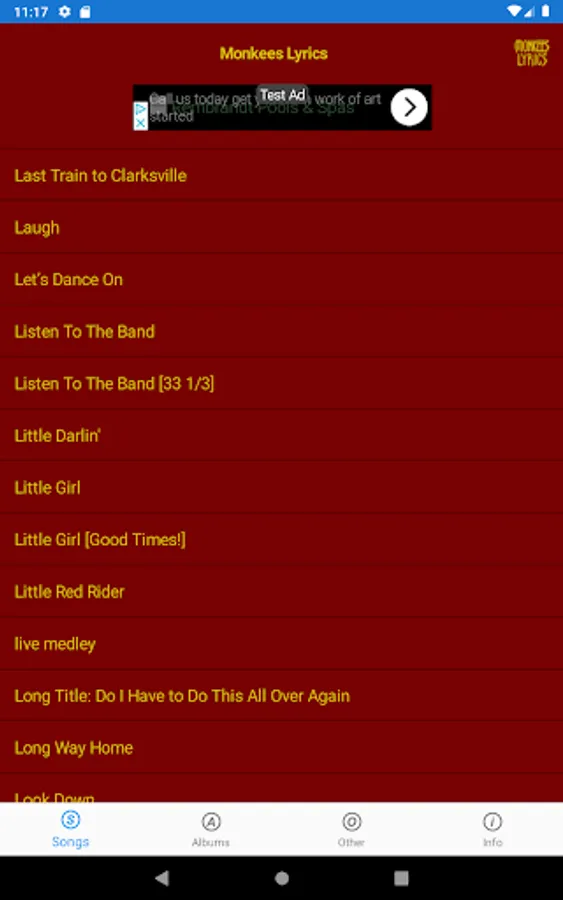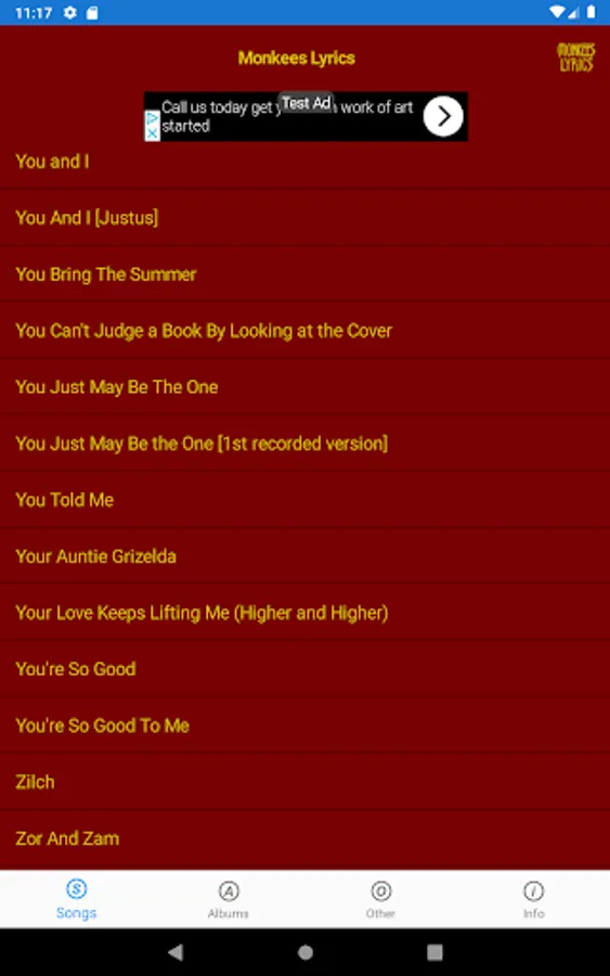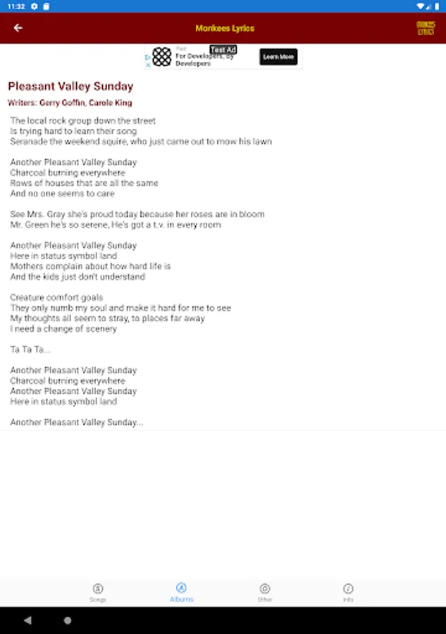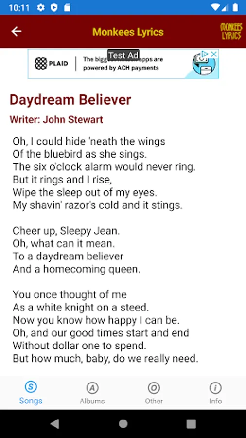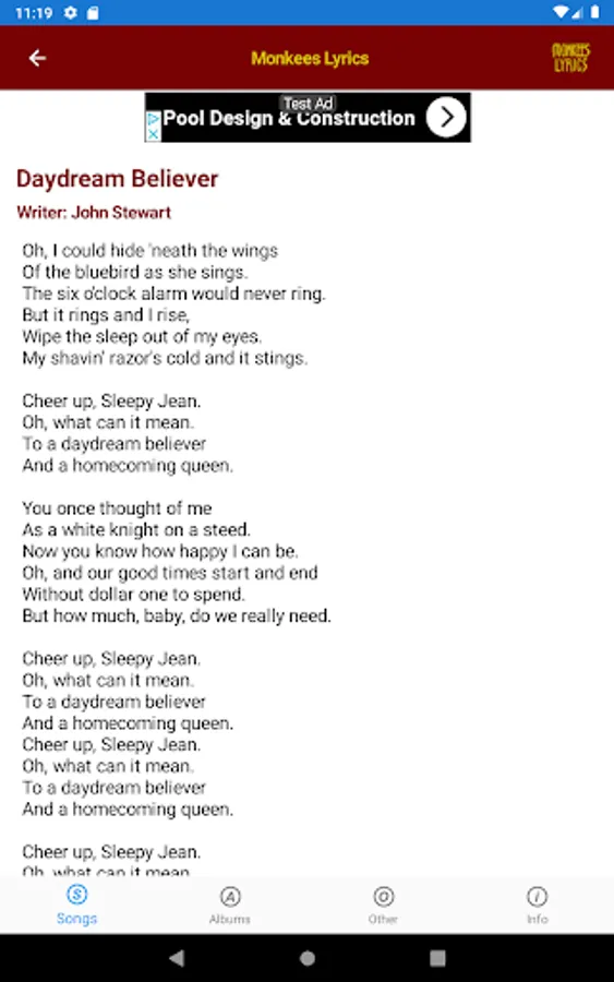 This lyrics application is not associated or affiliated with The Monkees or Rhino Records.