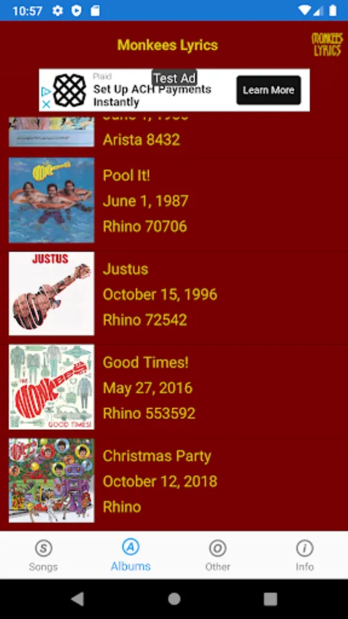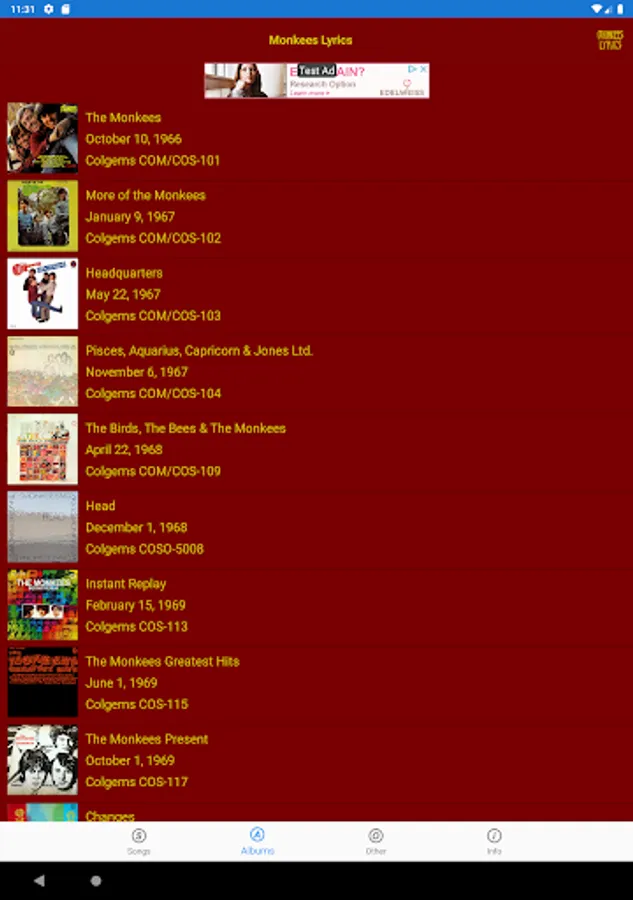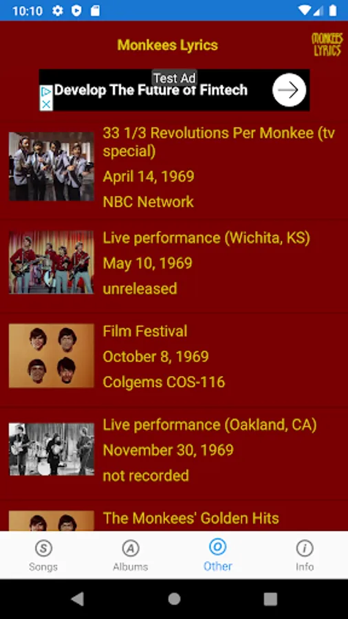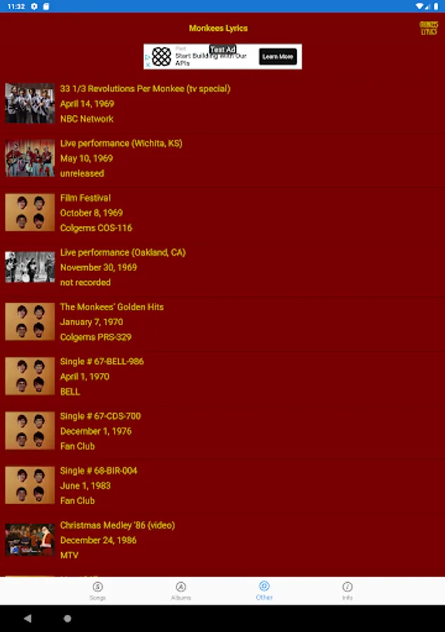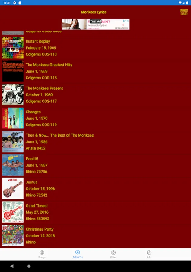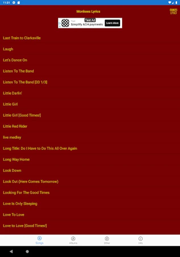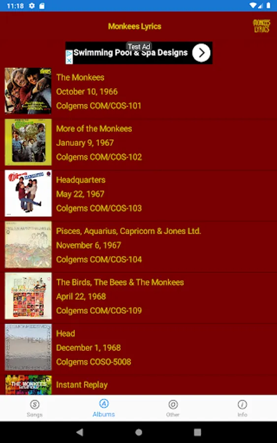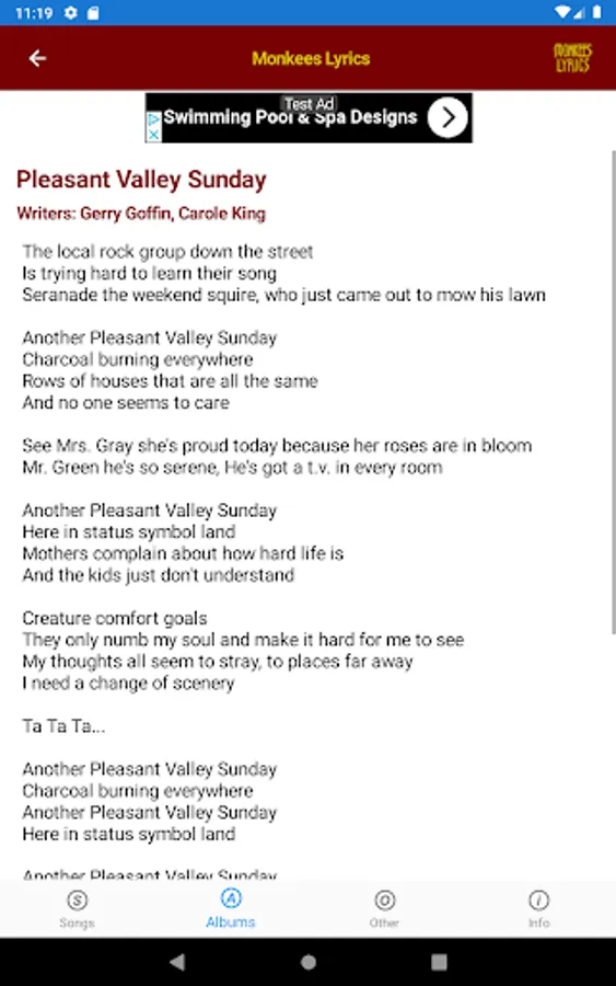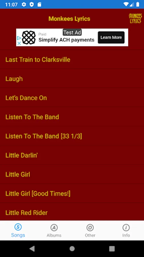 This lyrics application is not associated or affiliated with The Monkees or Rhino Records.