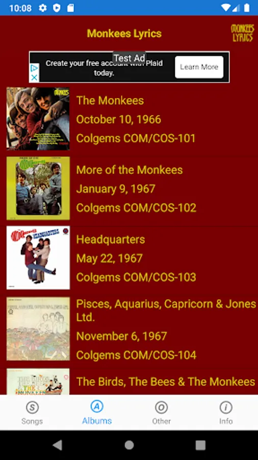 All The Monkees songs and lyrics from their albums and more!