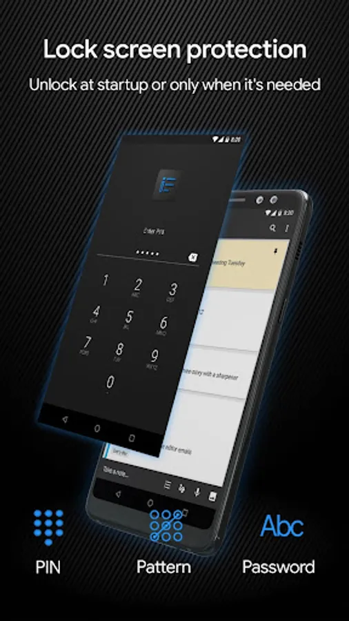 • Set PIN/Password/Pattern on start app