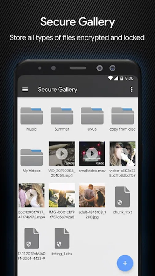 ✔ Built-in Secure Gallery makes it easy to store and view your private photos, videos and any types of files.
